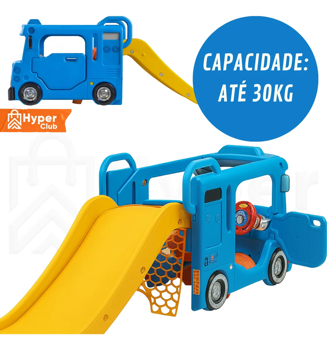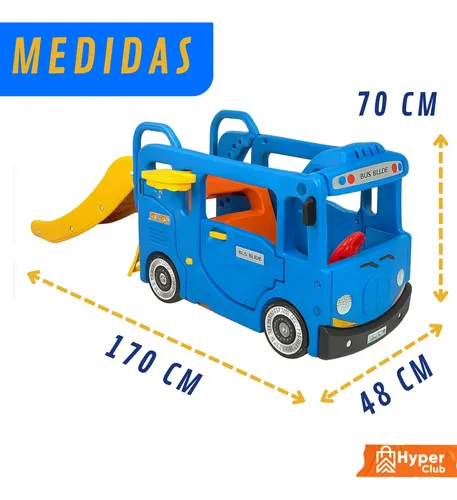 *Produto 2 em 1: ônibus escorregador e mini buraco de golf